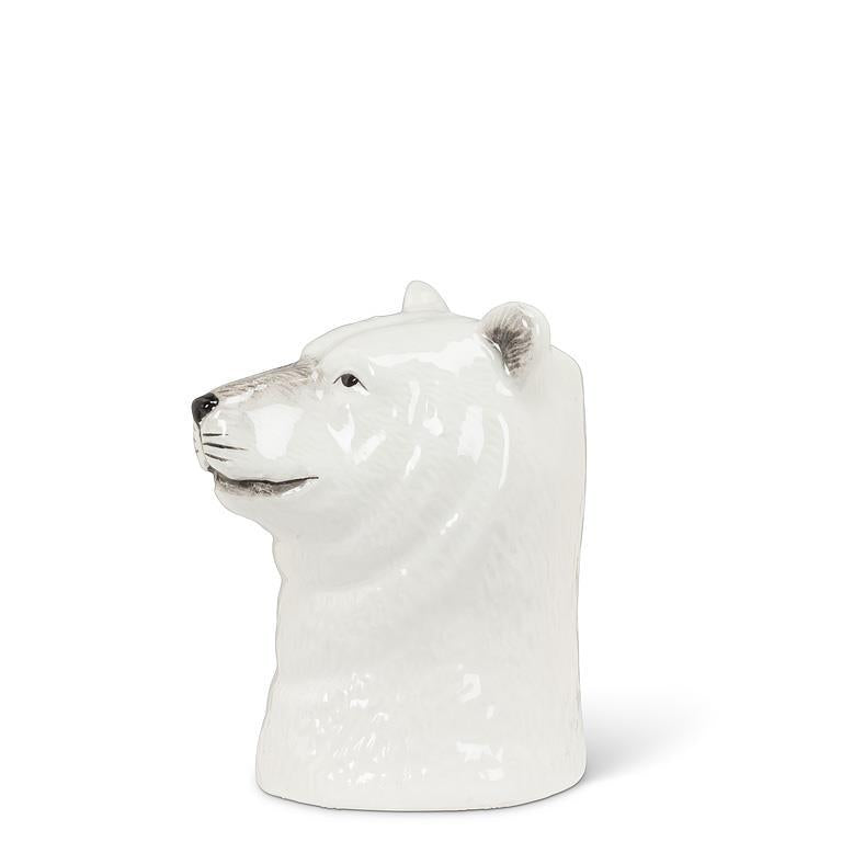 A crisp little accent with a cozy-cute twist. Shaped like a polar bear head in glossy white with delicate black detailing, this ceramic bud vase is perfect for a single stem, winter greenery, or a tiny bouquet clipped from the garden. Style it on a shelf, bedside table, or mantel for an instant nature-inspired moment.